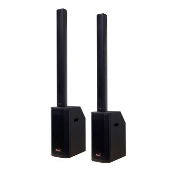 This 1200W PA column speaker system is a plug and play active speaker system ideal for live shows, parties, bands, musicians or anywhere foreground sound reinforcement is required. The system reproduces accurate and natural sound in various environments. Each system is supplied with an active dual 8″ subwoofer unit, passive subwoofer unit and two column speakers which fit into the recessed top hat connection on the top of the subwoofer. This creates a low visual profile, allowing patrons easy viewing while still providing plenty of volume for most small to medium venues.